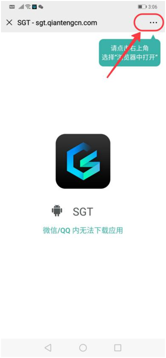 第一步、访问SGT钱包下载地址: http://sgt.qiantengcn.com/SGT 直达下载页面,或用微信扫描下方二维码,(注册邀请码12345ck12345)