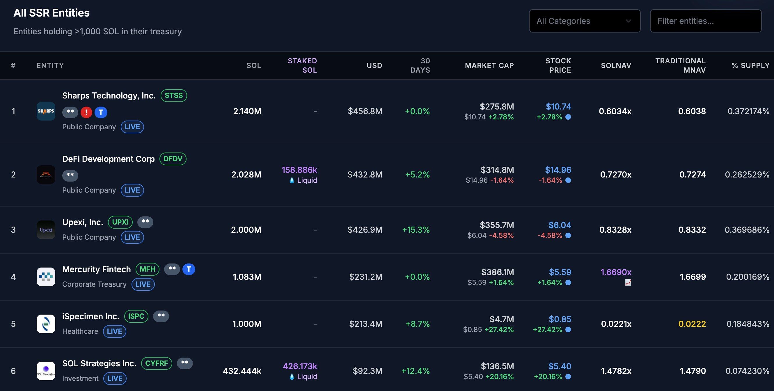 Strategic SOL Reserve 数据显示,目前 SOL 财库公司中,持仓规模最大的依次为 Sharps Technology(STSS)、DeFi Development Corp(DFDV)、Upexi(UPXI),分别持仓 214 万枚(4.57 亿美元)、203 万枚(4.33 亿美元)、200 万枚(4.27 亿美元)。以此计算,若Forward Industries 后续买入动作够快,其将凭借着 16.5 亿美元的筹码快速成为规模最大的 SOL 财库。