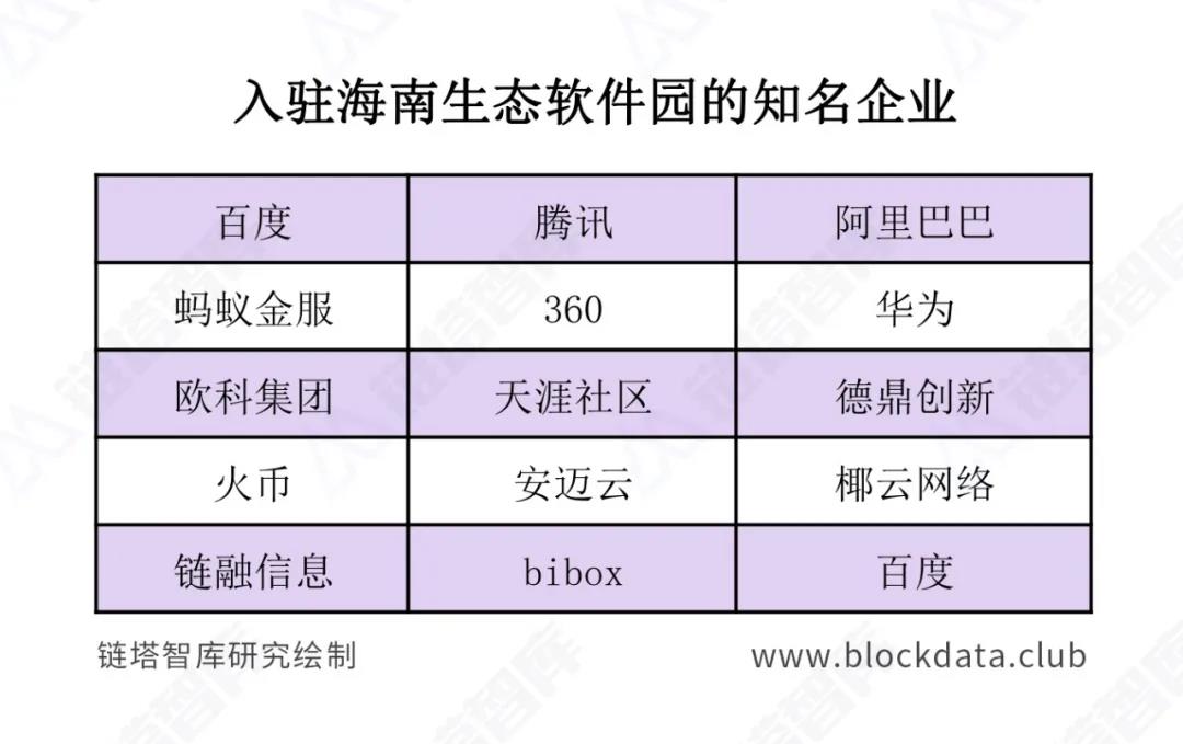 得益于政府对区块链的支持力度,海南最受区块链企业和互联网巨头企业欢迎。目前,欧科集团、火币、安迈云、椰云网络、链融信息、bibox等区块链企业,以及百度区块链实验室、腾讯、360区块链、阿里巴巴、蚂蚁金服、华为、天涯社区、德鼎创新等都已入驻海南。